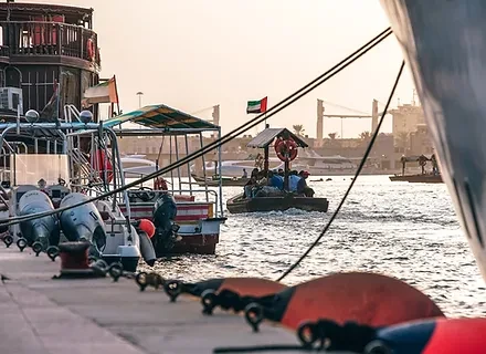 The creek's initial inlet into mainland Dubai is along the Deira Corniche and Al Ras areas of eastern Dubai and along the Al Shindagha area of western Dubai. It then progresses south-eastward through the mainland, passing through Port Saeed and Dubai Creek Park. The creek's natural ending is at the Ras Al Khor Wildlife Sanctuary, 14 kilometres (8.7 mi) from its origin at the Persian Gulf. The traditional form of transport between the eastern and western sections of Dubai via the creek was through abras (water boat), which continue to operate in Dubai for transportation and touristic purposes.