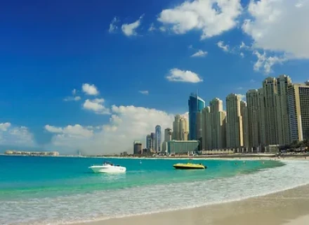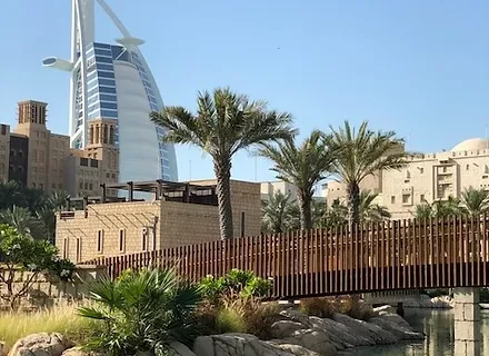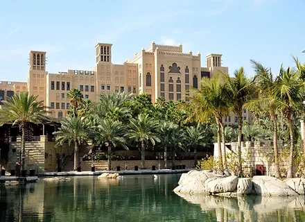 Madinat Jumeirah the Arabian Resort is a luxurious 5 star resort in Dubai and is also the largest resort in the emirate, spreading across over 40 hectares of landscapes and gardens. Situated along 1km of private beachfront adjacent to Jumeirah Beach Hotel and Burj Al Arab. It is an approximate 30 minute drive from Dubai International Airport in non-peak traffic. Madinat Jumeirah is designed to resemble a traditional Arabian town. The resort comprises two boutique hotels Al Qasr and Mina A’Salam and a courtyard of 29 summer houses called Dar Al Masyaf. The resort has exclusive Souk Madinat and also has over 40 restaurants and bars. Souk Madinat Jumeirah combines traditional Middle Eastern shopping culture of stands, barrows and stalls with a mix of boutique brands, souvenir gift shops, luxury fashion and jewelry.