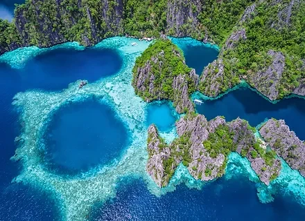 El Nido is a coastal settlement and major tourist destination on the Philippines island of Palawan. El Nido comprises 45 islands and islets; limestone cliffs are also found here, which form a Karst backdrop similar to those found in Ha Long Bay, Krabi, and Guilin. El Nido is a popular destination for locals during the long holidays of Holy Week but, until recently, has been relatively unknown to foreign tourists. Beaches, clear waters (away from the main town), jungle, steep limestone cliffs and stunning inlets make up for beautiful seascapes.